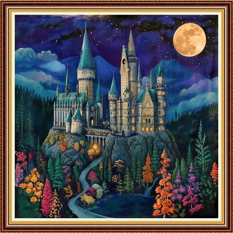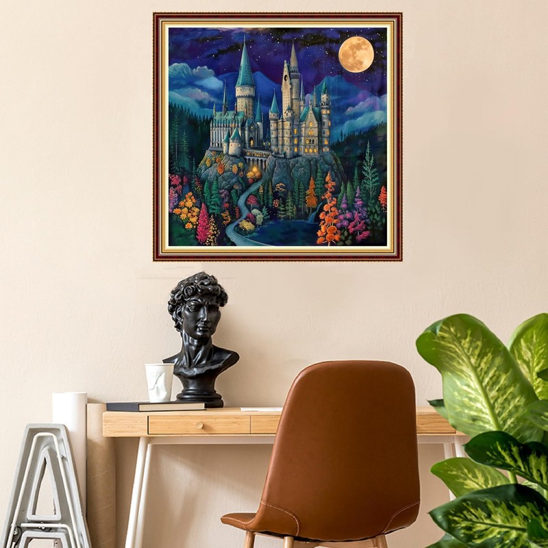 DMCCRAFT Stamped Cross Stitch Kits for Adults 11CT Printed Cross-Stitch Patterns Embroidery Kits Easy Cross Stitching Needlepoint Kits-Moonlight Castle 18x18 inch