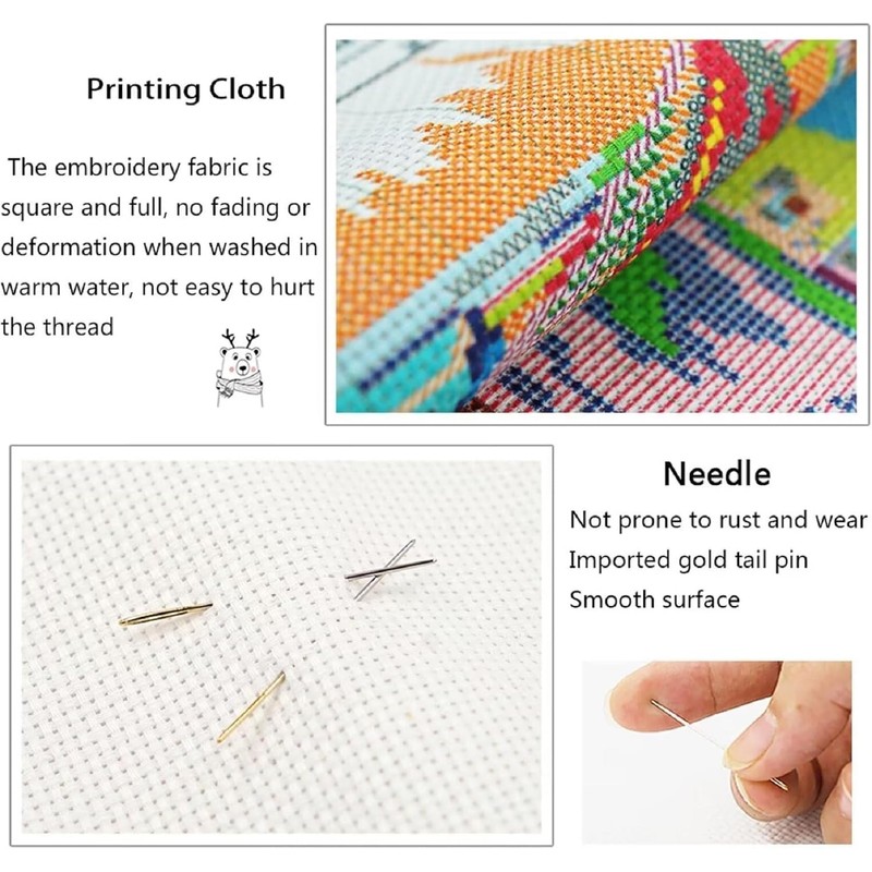 - 💚Packaging Instructions:11CT printed cross stitch fabric size: 18x18 inches, including: embroidery fabric x 1, needle x 2, all color threads (additional 30% embroidery thread), English description x 1, high-definition drawing x 1