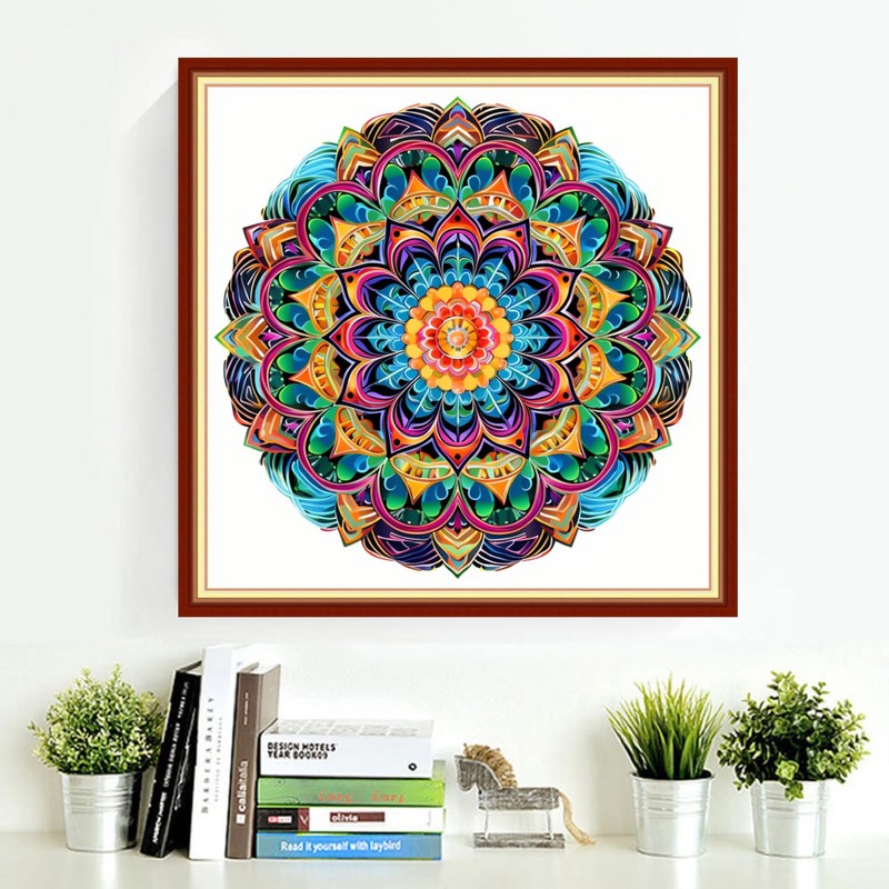 DMCVIVR Stamped Cross Stitch Kits for Adults Beginners Embroidery Kits 11CT Needlepoint Kits Cross Stitch Patterns Embroidery Patterns- Colorful Magic Mandala 18x18 inch