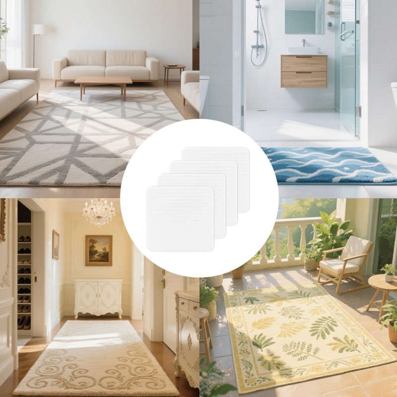 [Innovative Technology]: Thanks to our patented suction system, these non-slip mats can adhere perfectly to hard floors (tiles, parquet) without leaving residue. They are designed to withstand daily wear and tear and keep your mats in place even with sudden movements. Universal adaptability: these carpet pads are available in 4 units of 10 x 10 cm each and fit carpets of all sizes. They are ideal for living room areas, entryways or bathroom mats as they prevent dust from entering and protect your valuable floor. [Easy Care]: Washable and stain-resistant materials that can be easily wiped clean. Unlike conventional adhesives, they do not stick to the carpet and can be reinstalled as desired without damaging the fibres. [Safety first]: Specially designed for slippery floors (bathroom, kitchen), according to our tests, they reduce the risk of falling by 70%. The non-slip texture is barely noticeable under the feet and provides optimal safety without compromising the aesthetic appearance. [Customer Service]:We provide the best service to our customers. If you have any questions about our products, you can contact us at any time, and we will offer you a reasonable solution.