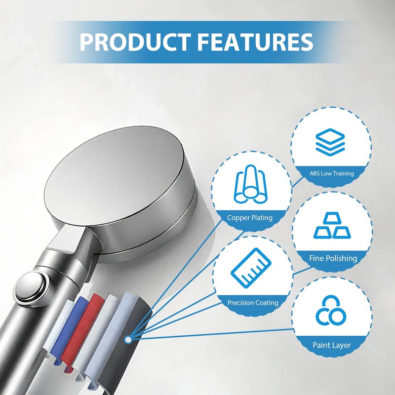 - High-quality materials: Our shower head is made of ABS material, rust-proof and lightweight, guarantees a constant strong water jet even at low water pressure. Enjoy a spa-like experience in the comfort of your own home with its sleek design and advanced features.