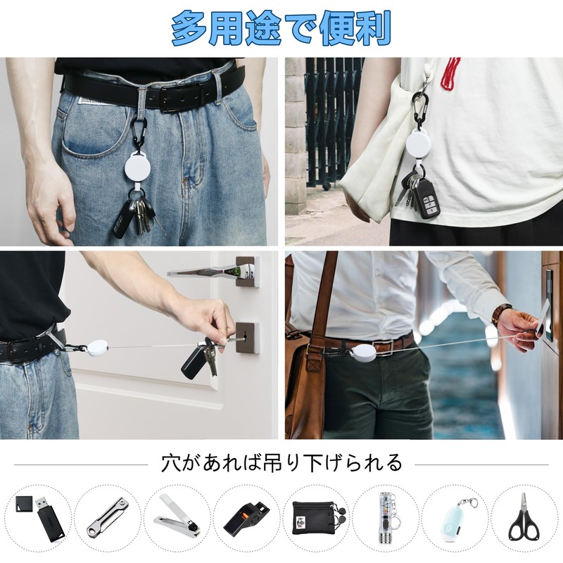 - (23.6 inches (60 cm) Elastic Rope, Smooth Operation): The powerful built-in spring can support up to 7.1 oz (200 g). Hang up to 10 keys and it will instantly return to its original length after use so you don't have to worry about messy rope sagging. Ergonomic design allows maximum extension of 23.6 inches (60 cm) when attached to bags or belts. Easy access to keys and cards to reduce the risk of losing them