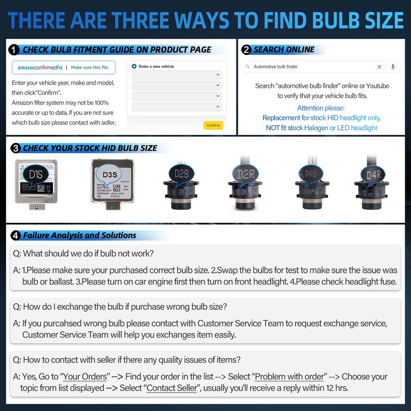 - 【IMPORTANT】Replacement for stock D2S HID headlights only, NOT fit if your car stock Halogen/LED headlight assembly even system say "fits".