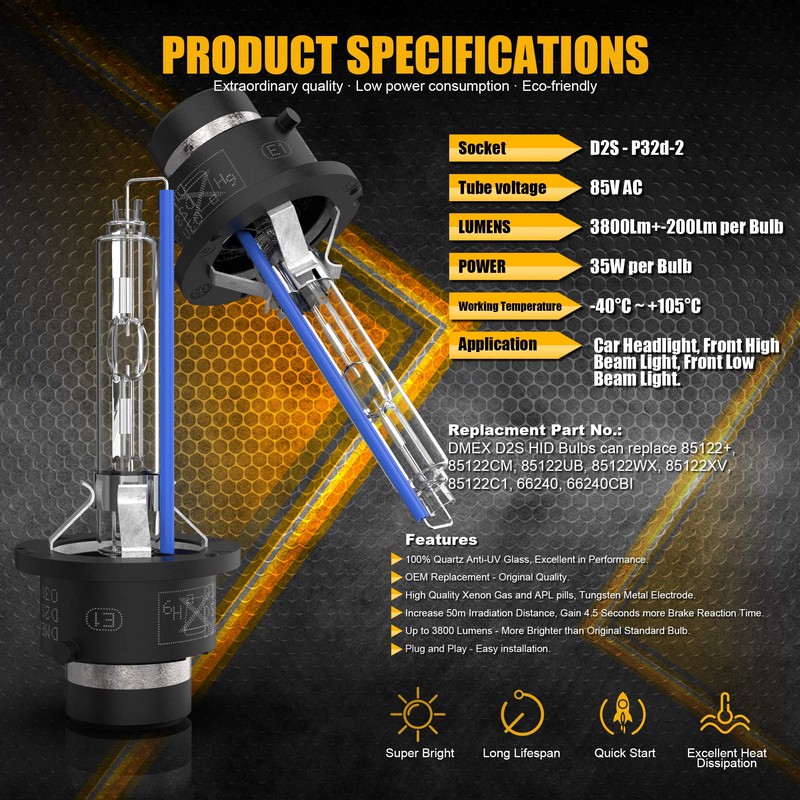 - 100% Quartz Anti-UV Glass, Excellent in Performance. Up to 3800 Lumens - More Brighter than Original Standard HID Bulb.