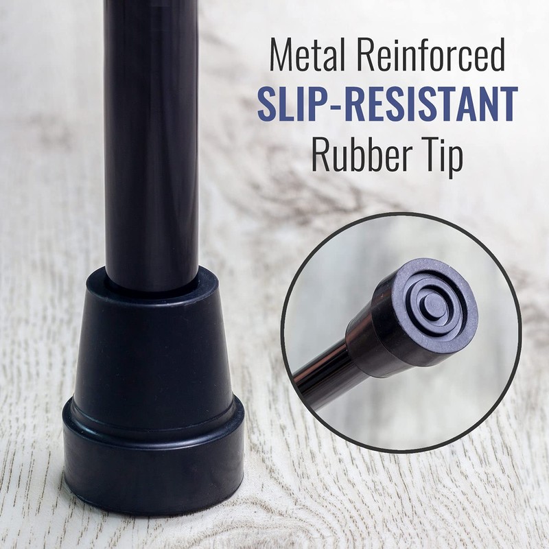 **HealthSmart Adjustable Folding Fancy Cane with Ergonomic Handle and Rubber Tip** Say goodbye to medical-looking canes and go places in style using this attractive lightweight cane. But it’s no lightweight when it comes to support! Constructed of strong anodized aluminum, it can support up to 250 pounds. The handle is made of quality plastic which will feel comfortable in your hand. And the slip-resistant rubber tips give you a firmer grip on the floor or pavement, helping you feel safer. It’s also adjustable from 33 to 37 inches, meaning you can set it at the height most comfortable for you.