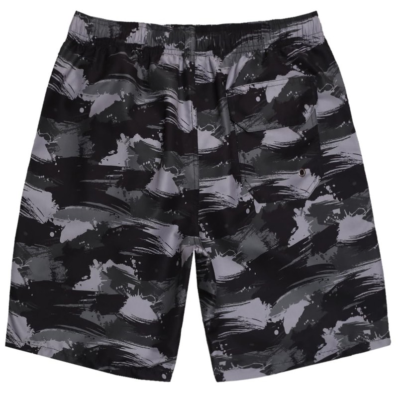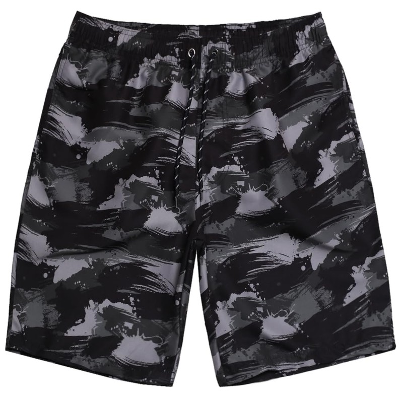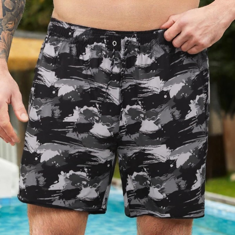 • 🎨 Bold Camo Energy 🎨 A modern brush-stroke camo in black and grey makes a confident statement at the beach or gym. Built for guys who like strong, no-fuss design.