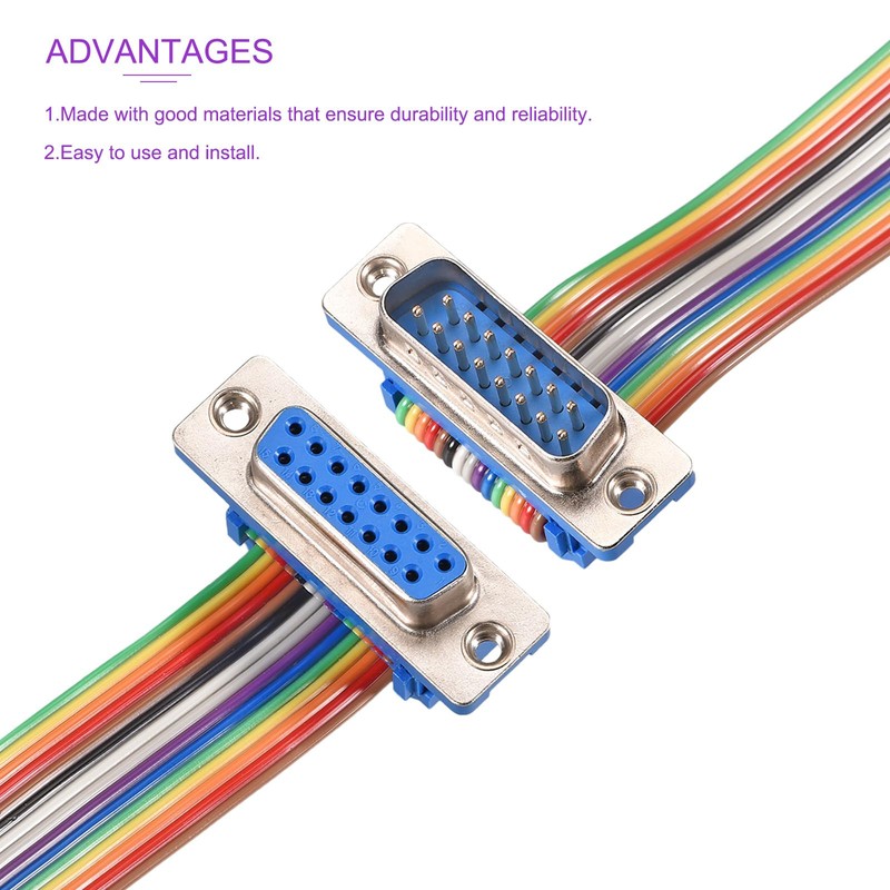 - Product: Flat Ribbon Cable; Pin Number: 15; Length: 50cm; Total width: 19mm; Pin pitch: 2.54 mm; Type: DB15 Male to Female;Color: Rainbow Color.