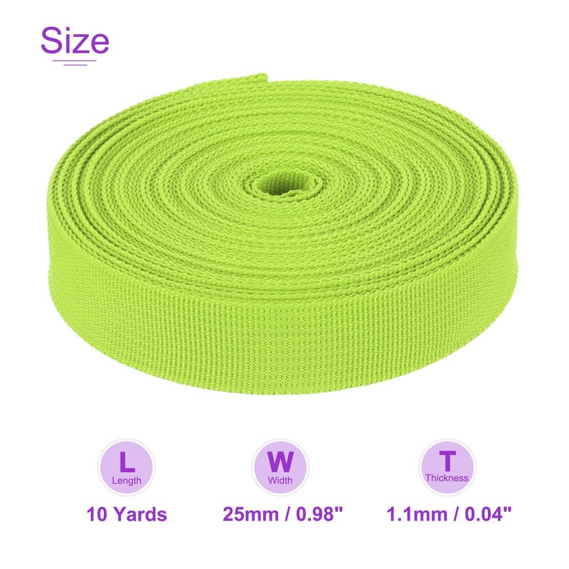 - Size: length: 10 metres; width: 25 mm/0.98 inches; thickness: 1.1 mm/0.04 inches; colour: grass green; 1 roll of nylon webbing
