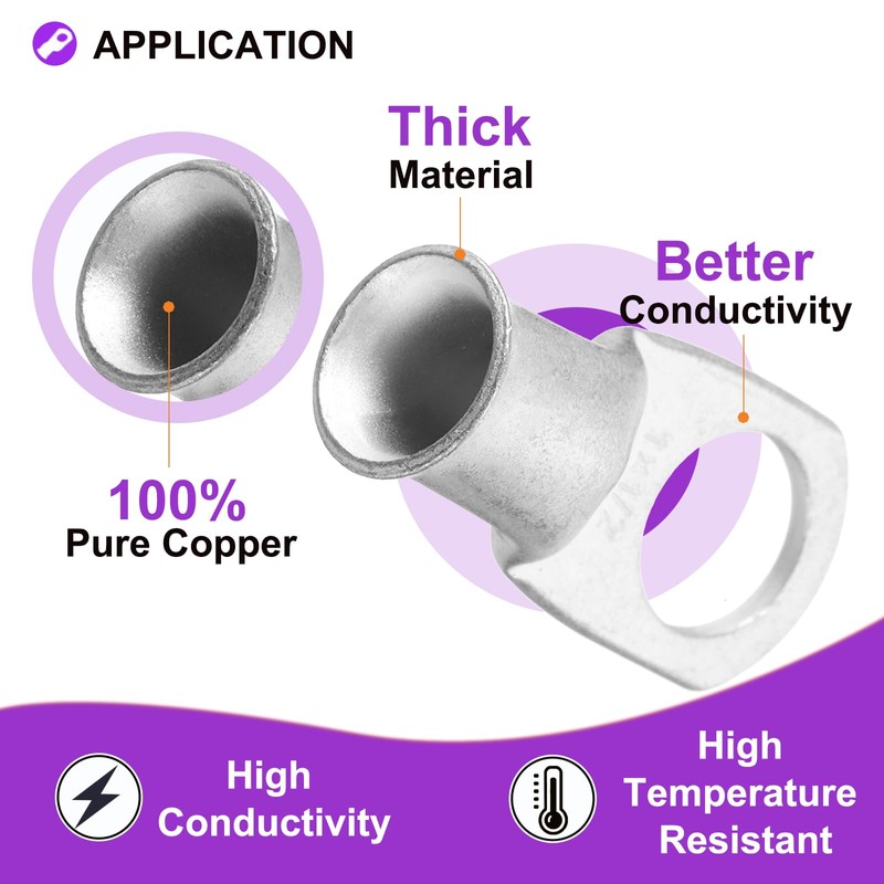 - APPLICATION: This battery lug is widely used in power electronics industry, electrical equipment, industrial automation and power control system, etc. They are suitable for various electrical projects and provide safe and stable connections. These reliable and safe electrical connections ensure optimal performance and minimize the risk of electrical short circuits.