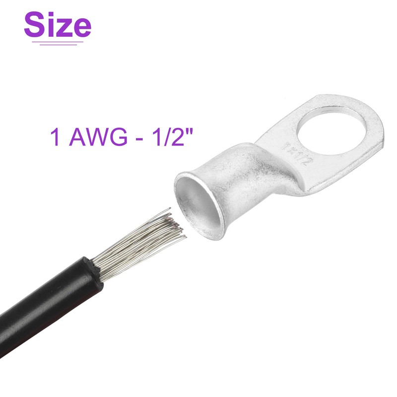 - SIZE : Contact Material: Tinned Copper; Installation Method: Crimping Installation; Wiring Specification: 1 AWG - 1/2 Inch; Package Content:10 Pcs x Wire Lugs