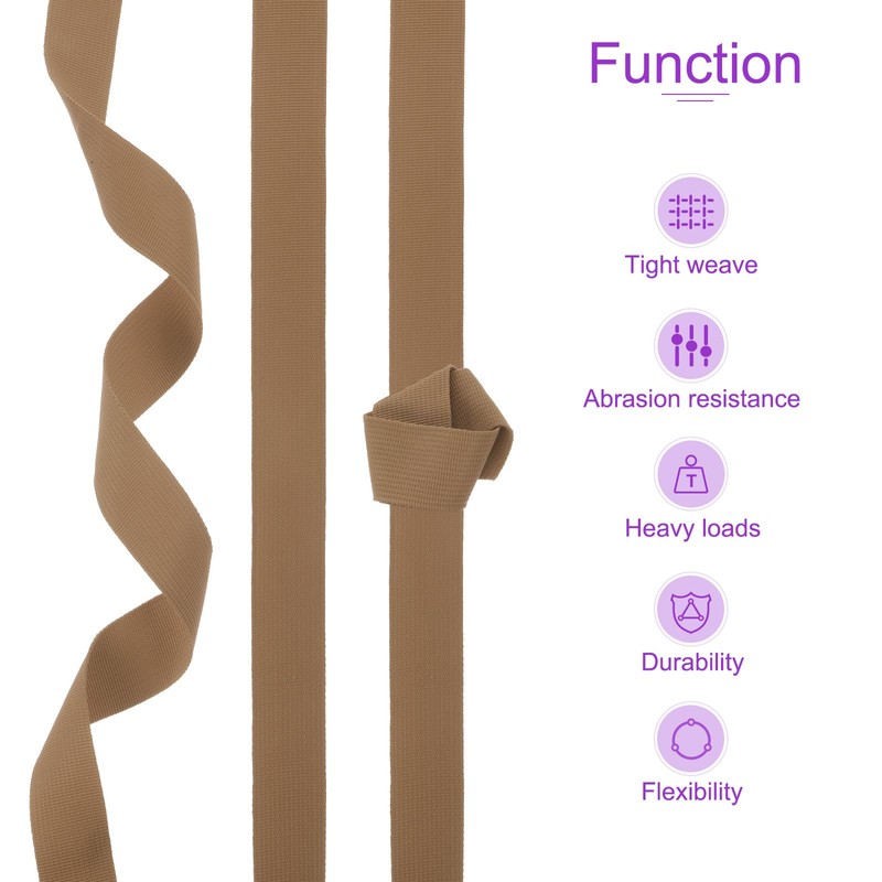 - SIZE: Length: 10 Yards; Width: 38mm / 1 1/2 inch / 1.5 inch; Thickness: 1.1mm / 0.04 inch; Color: Light Brown; 1 Roll of Nylon Webbing Strap