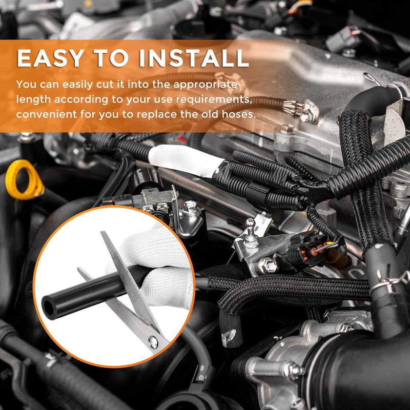 - APPLICATION: The vacuum hose is suitable for automotive vacuum pipelines, windshield cleaning fluid vacuum hoses, intake components, etc. It is mainly used for air and water transmission in engines, but not for fuel, oil and coolant. In addition, it can be used for watering irrigation, experimental equipment and industrial equipment.Please note that the vacuum hose is not applicable to oil.