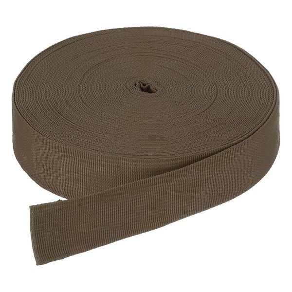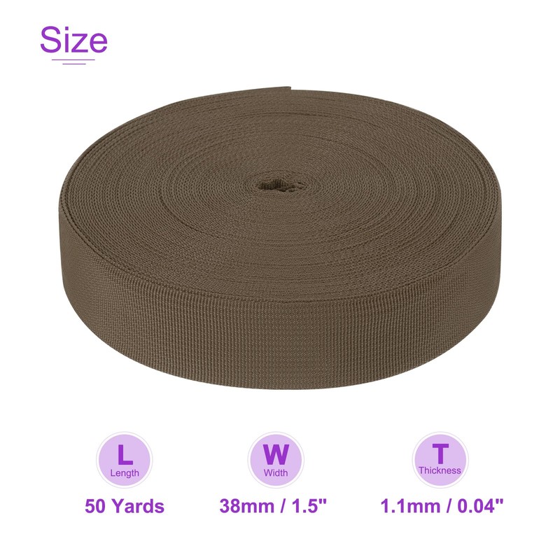 - SIZE: Length: 50 Yards; Width: 38mm / 1 1/2 inch / 1.5 inch; Thickness: 1.1mm / 0.04 inch; Color: Dark Brown; 1 Roll of Nylon Webbing Strap