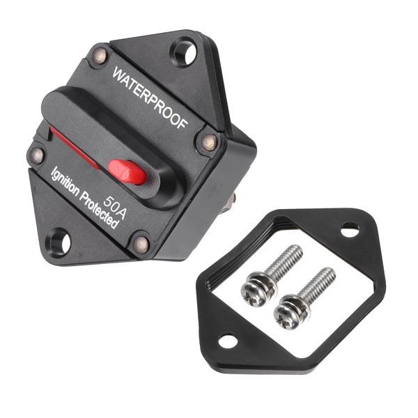 DMiotech 50A Circuit Breaker, 12-48V DC Automotive Inline Fuse Holders Inverter with Reset Button Rubber Shell for Car Marine Boat Audio System Overload Protection