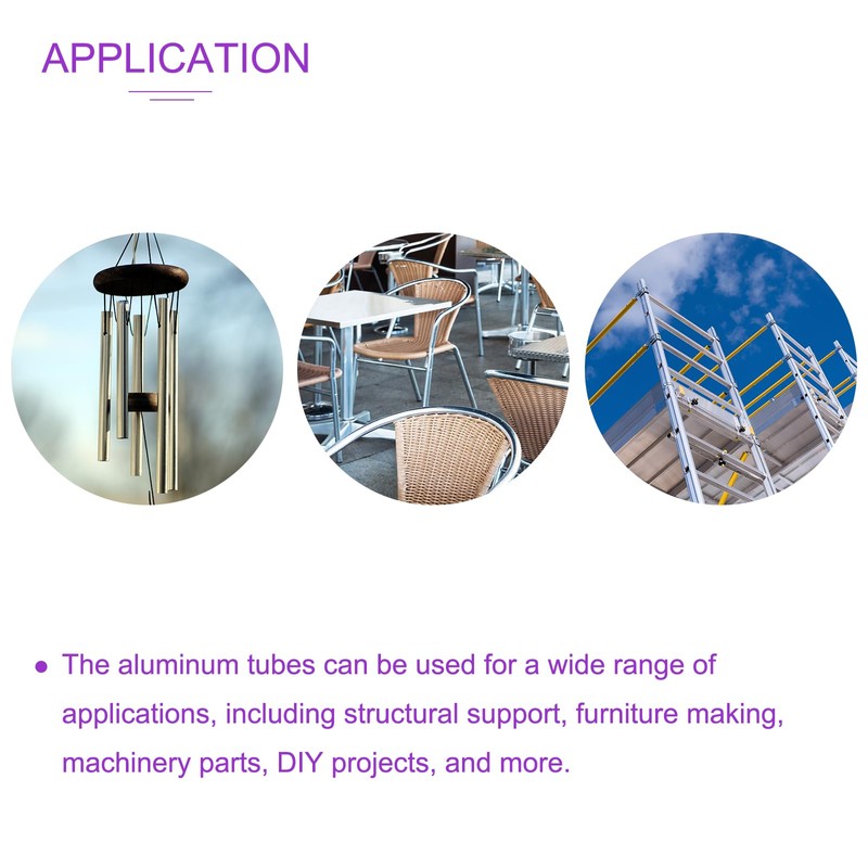 - APPLICATION The aluminum tubes can be used for a variety of applications, including structural support, furniture making, machine parts, DIY projects and more. Aluminium tubes have excellent heat dissipation properties and are therefore ideal for applications where heat is a role.