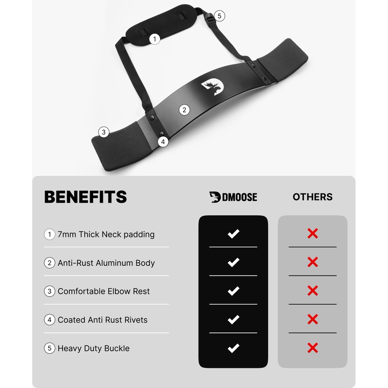 - ✅ CONTOURED, ADJUSTABLE DESIGN - Created by fitness experts our curling blaster features thick padded elbow pads and foam neck padding to improve safety and comfort, as well as a fully adjustable strap to support men or women lifters.