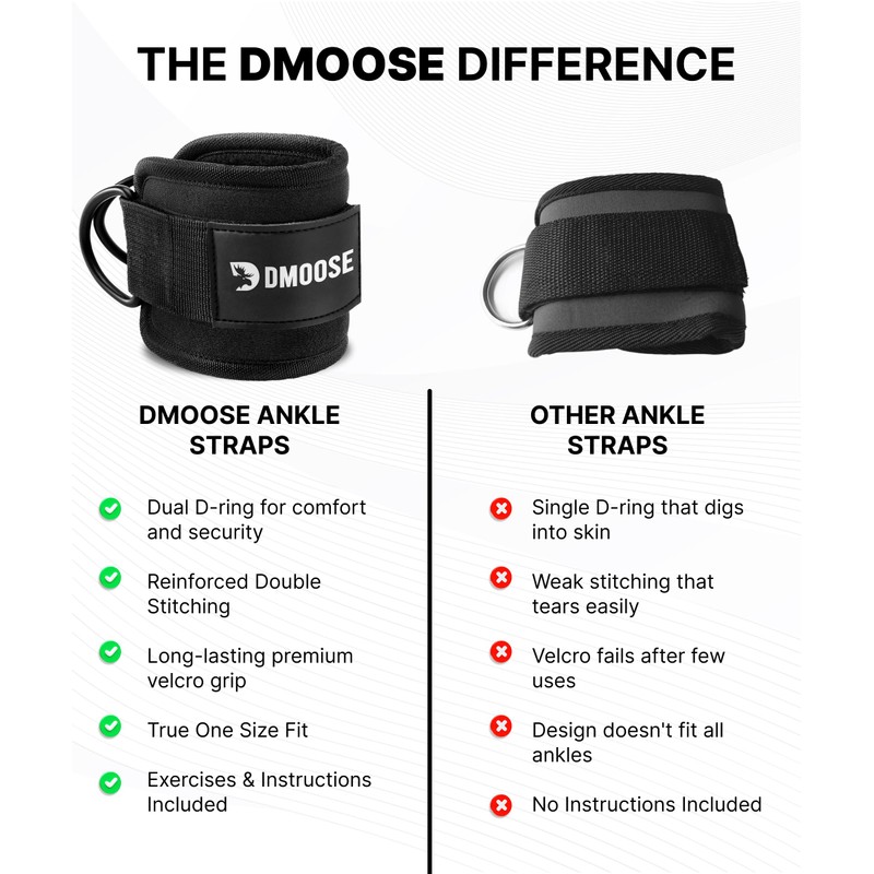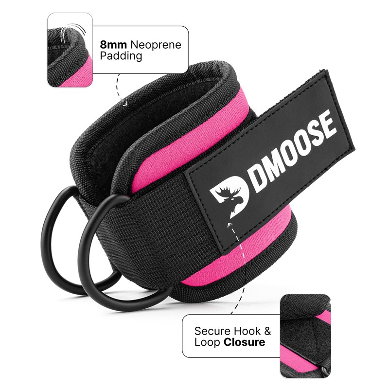 DMoose Ankle Strap for Cable Machine - One Size Fit with Premium Padding, Workout Kickback Ankle Cuffs, Ankle Bands for Working Out, Booty Workouts, Leg Extension, Hip Abductors & Lower Body Exercises