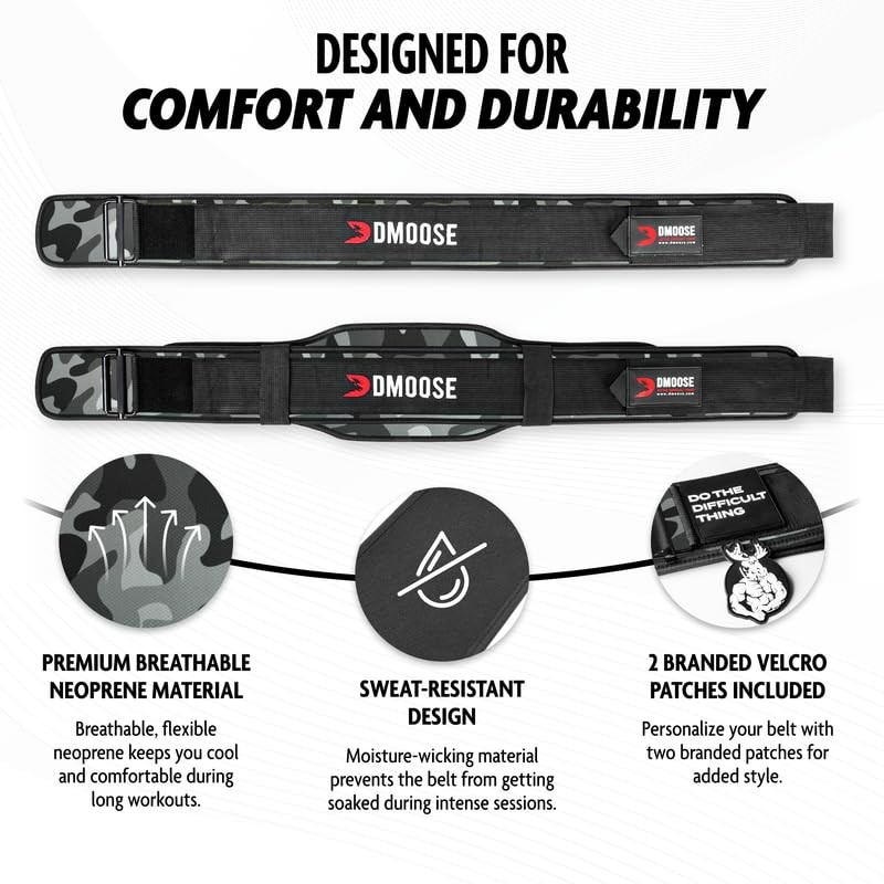 - SAY GOODBYE TO BACK INJURIES: Weightlifting can strain your lower back, making you more vulnerable to injuries. However, DMoose 2-in-1 Neoprene Belt offers a tailored solution specifically designed for weightlifters. This innovative belt serves as a protective barrier, providing the essential support you need to maintain proper posture during weightlifting sessions.