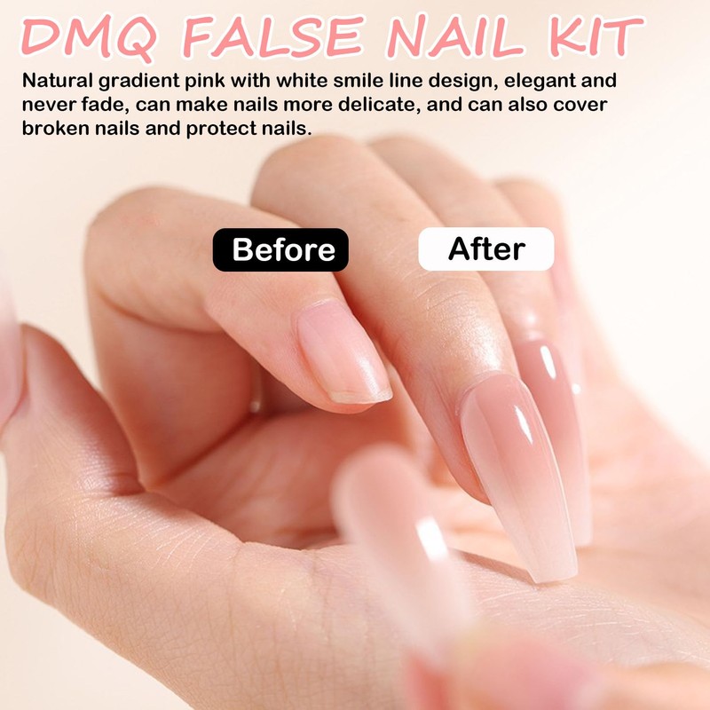 Natural gradient pink and pre-printed smile line make the fingers look slender and more beautiful while easily solving various nail problems.