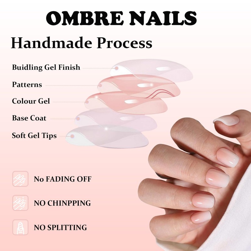 - 【UPGRADED SPRAY GEL TECHNOLOGY】- These square gradient press on nails with highly simulated saturated color, super close to natural skin tone and the effect is more natural, deliver the most salon-like gel polish finish!