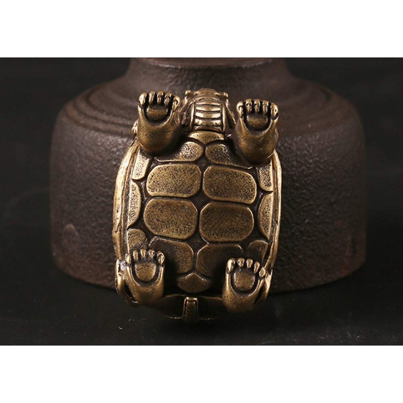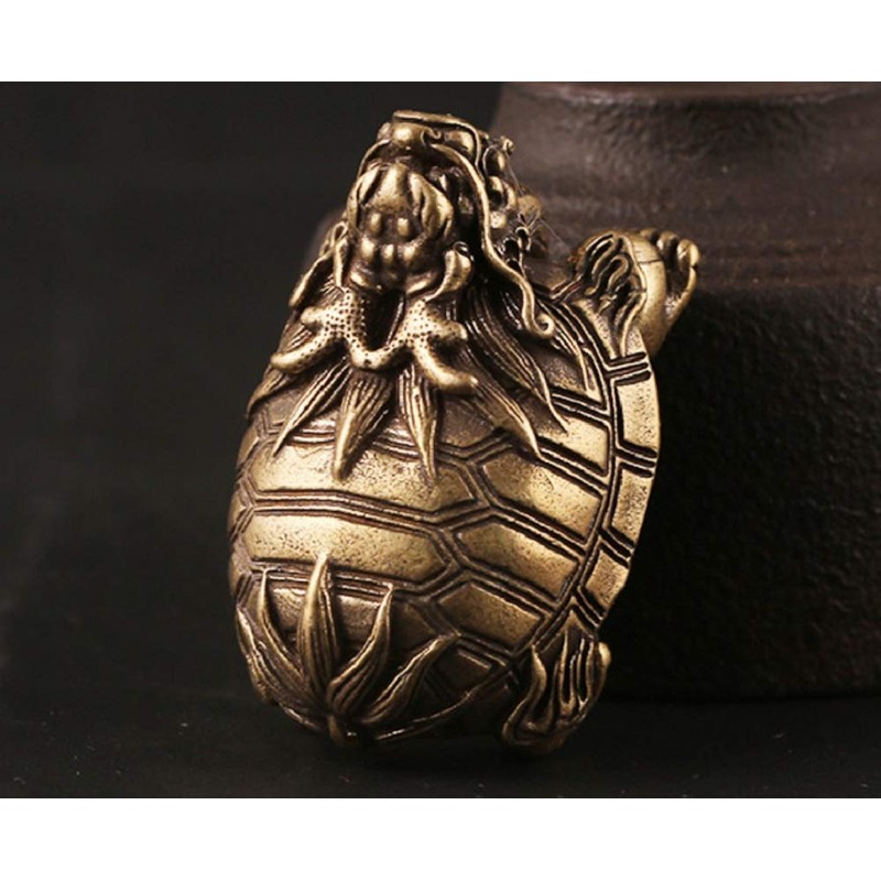 DMtse Chinese Feng Shui Brass Mini Cute Dragon Turtle Decor Statue Figurines Sculpture Collectibles for Avoiding Evil & Keeping Peace Gift Mascot