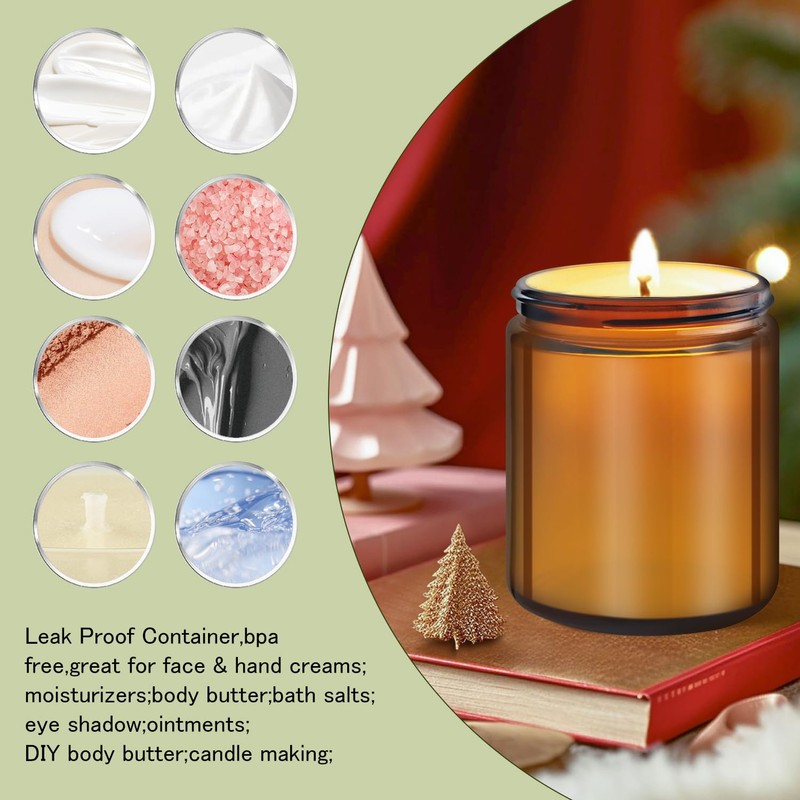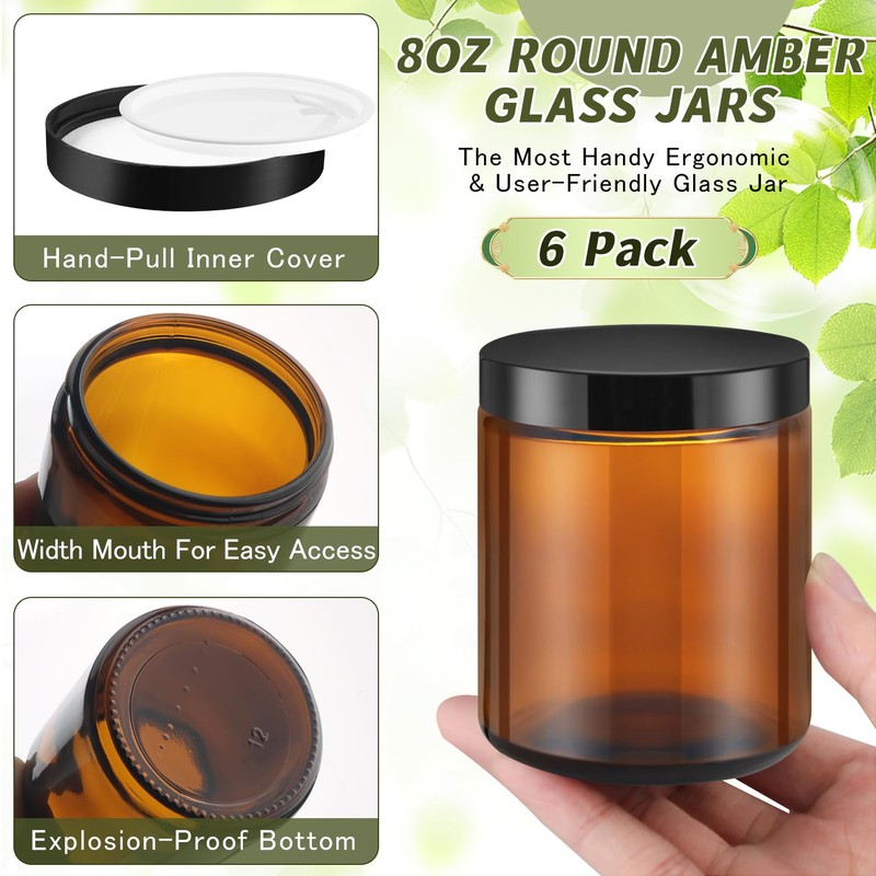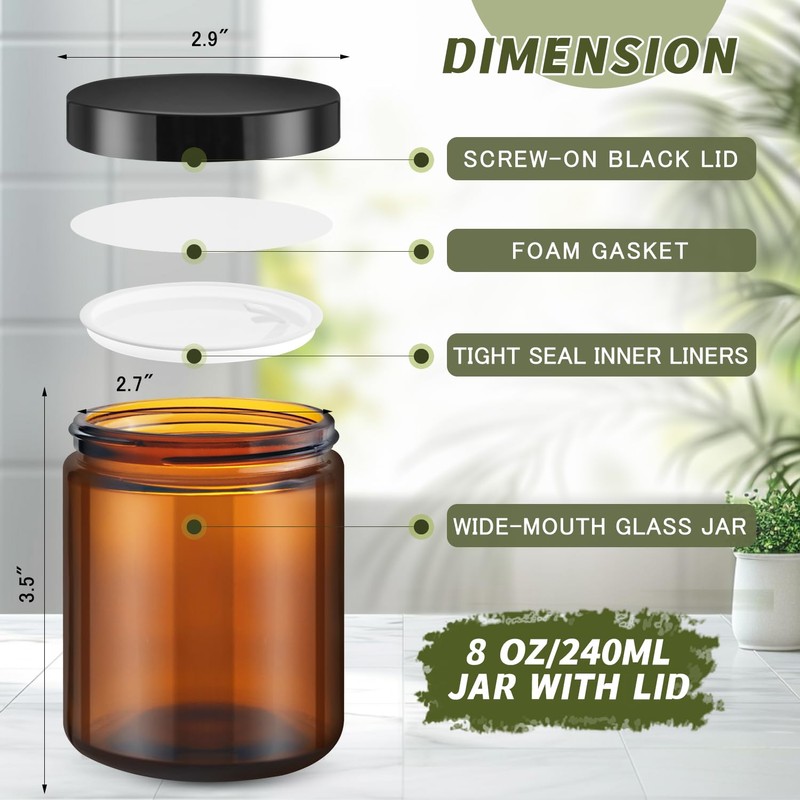 - Food Grade Materials-These 8 oz amber jars with lids are made of durable,thick dark glass ensuring durability and high temperature resistance to prevent cracking,making them alright for your DIY candle-making creations;