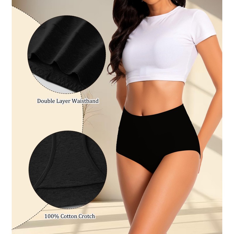 - Soft and Breathable Fabric: Our high-waisted panties are crafted from a blend of cotton and spandex, offering a stretchy fit that adapts to your body shape. With a 100% cotton double-layered crotch, they ensure exceptional breathability, perfect for comfortable all-day wear.