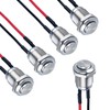 DMWD 5pcs 12mm Momentary Push Button Switch High Round Head with Pre-soldered Cable Stainless Steel 1NO 12V 24V 36V 110V 250V Waterproof IP66 Without LED (Silver Shell)