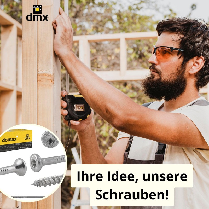 - DMX brand: DMX is a brand specialising in the production of high-quality fasteners for wood. Our range includes a wide range of wood screws, brackets, post anchors as well as various types of post holders - for hammering, concreting, screwing or screwing into the ground. DMX stands for precision, durability and the highest quality, so that every construction project - whether in professional timber construction or in the private sector - can be implemented reliably and safely.