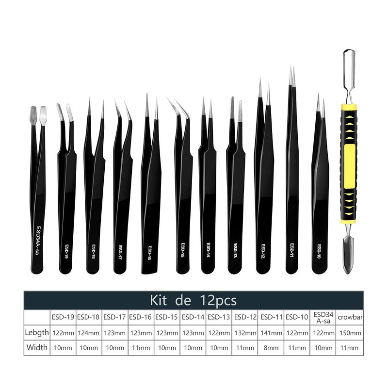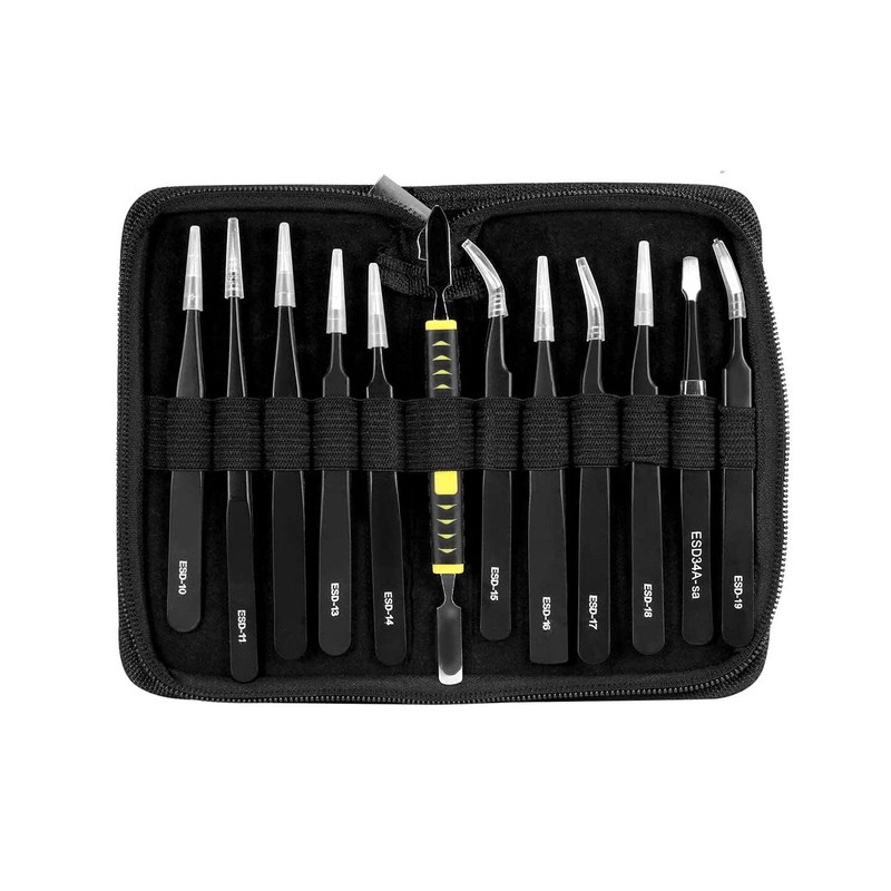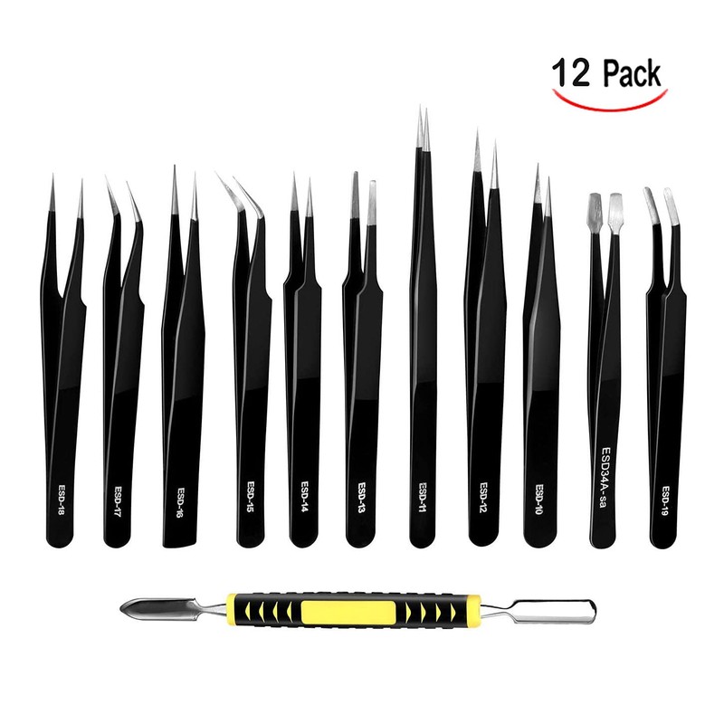 - đź”§Wide Application:The ESD tweezers tools kit is suitable for a wide range, and is very suitable for use in electronic products, jewelry, model making, or beauty fields, such as watches, tablets, deburring, electronic welding, etc.