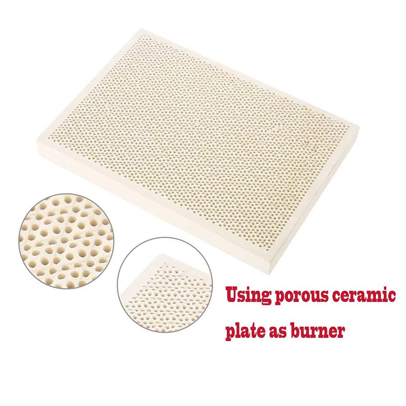 - 🐝Honeycomb Design: This soldering board use porous ceramic plate as burner, combustion infrared radiation has strong penetrating power. The unique structure of small honeycomb-like holes reduces surface contact between metal and the board so as to reduce heat loss while soldering.