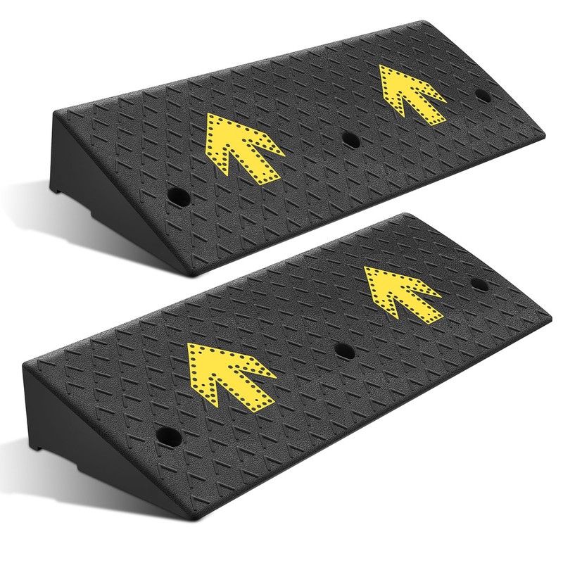 - EASY INSTALLATION - DNA Curb Ramp adopts an integrated design and Equipped with 1 x 3pre-drilled mounting holes that can be connected to the ground with screws; The yellow arrow symbol is more prominent at night