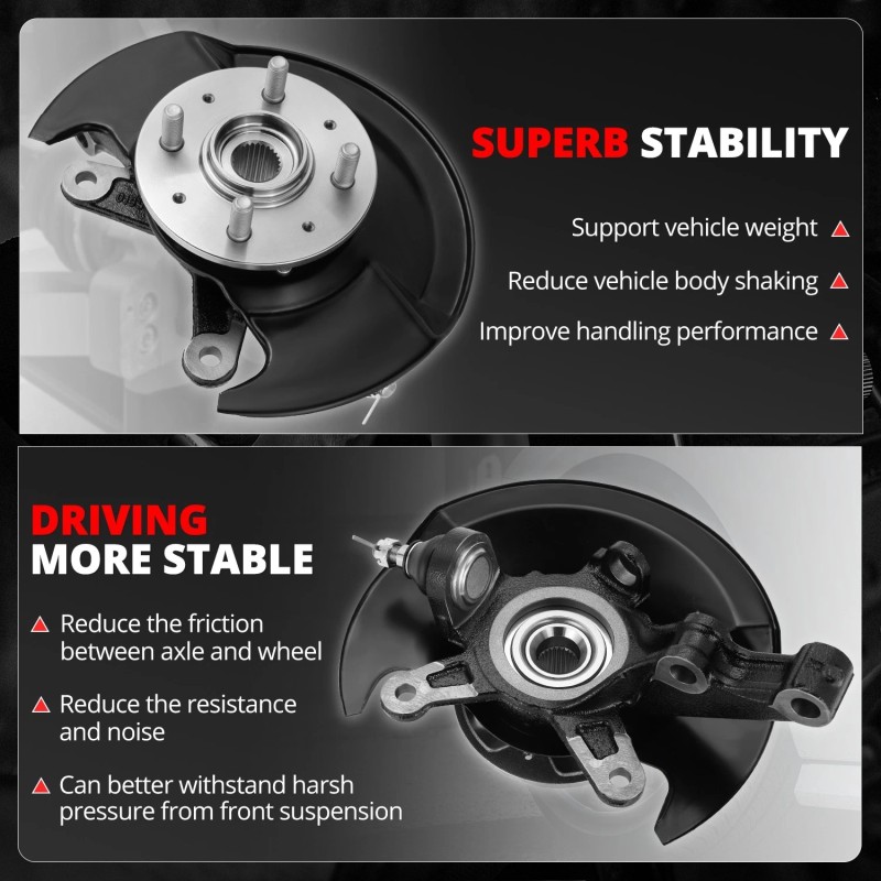 Replacing a worn wheel bearing would normally require a difficult procedure using a hydraulic press. Our loaded knuckle includes all critical components already assembled for a fast, simple, safe install.