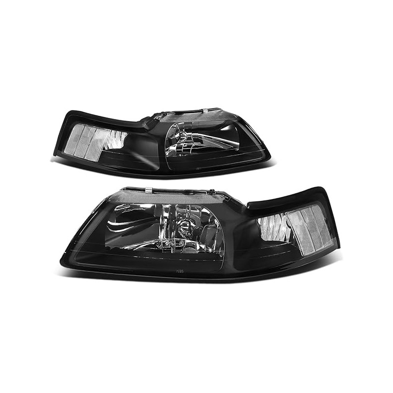 DNA MOTORING HL-OH-FM99-BK-CL1 Black Housing Headlights Replacement Compatible with 99-04 Ford Mustang