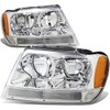 DNA Motoring HL-OH-JGC99-CH-AM Chrome Amber Headlights Assembly Replacement Compatible with 99-04 Jeep Grand Cherokee