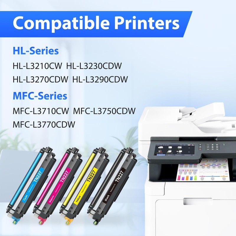 - Compatible Printers: TN227 TN-227 toner compatible with Brother MFC-L3770CDW MFC-L3750CDW MFC-L3710CW HL-L3290CDW HL-L3230CDW HL-L3230CDN Laser Printer