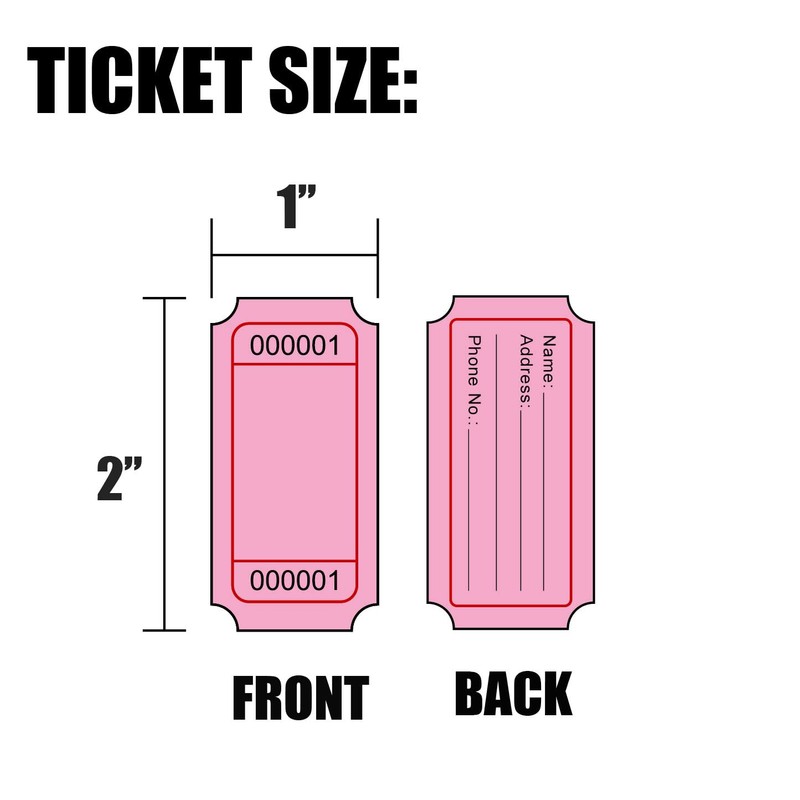 - Each roll consists of 2000 pieces of 2” x 1” tickets.