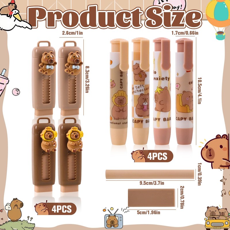 - Easy to erase: Our push pull eraser combines its cute appearance with practical functions. The unique design is more comfortable for children's hands and allows for a smoother application of force. The push pull eraser has a soft texture and can gently erase written items without damaging the paper