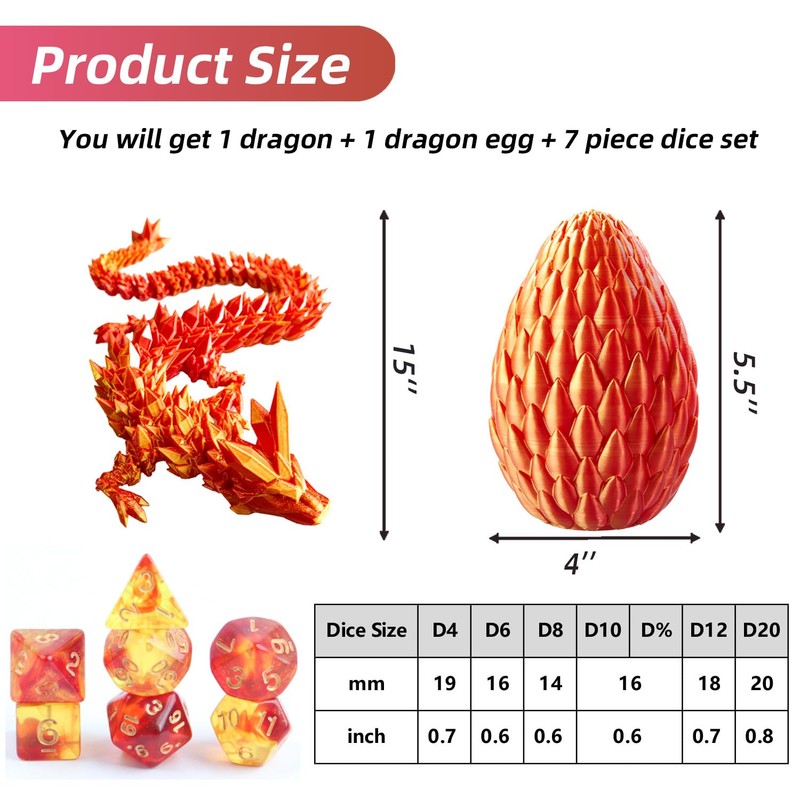 - Unique Dragon and Egg Combo: Enhance your gaming experience with our DND dice and 3D Printed Dragon, designed to fit inside a dragon egg, adding a unique and fun twist to your gameplay while supporting your storytelling in any D&D session.