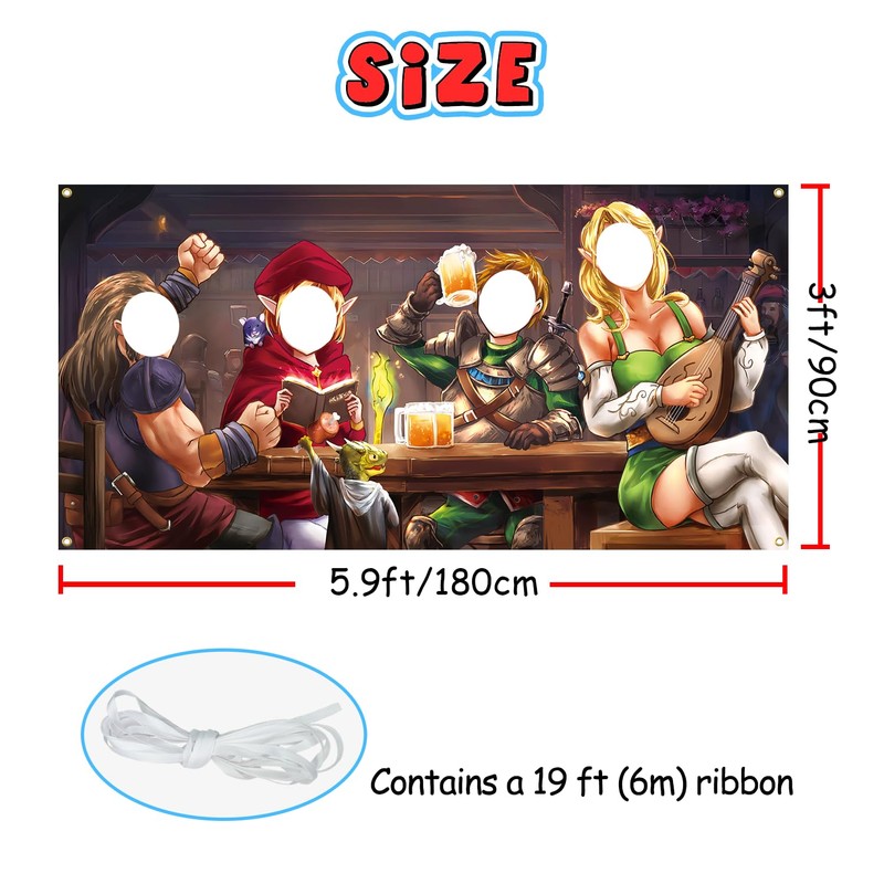 - ⚔️【Package】 Only 1 piece DnD Role-Play Face Hole Backdrop with 19 ft (6m) Ribbon. Backdrop Stand or Clips are Not included. To facilitate transport and packaging, items were sent Folded.