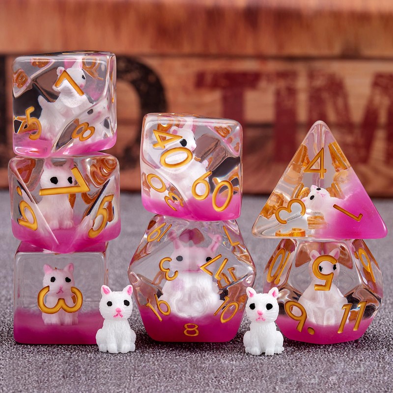 DND Resin Cat Dice Set, D&D Polyhedral Dice for Dungeons and Dragons RPG, MTG Role Playing Games D and D Dice 7pcs-Set D20 D12 D10 D8 D6 D4