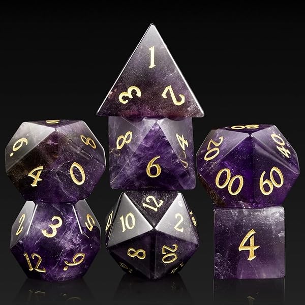 DNDND Amethyst Crystal DND Dice Set 7 PCS Gemstone D&D Dice with Gorgeous Gif...