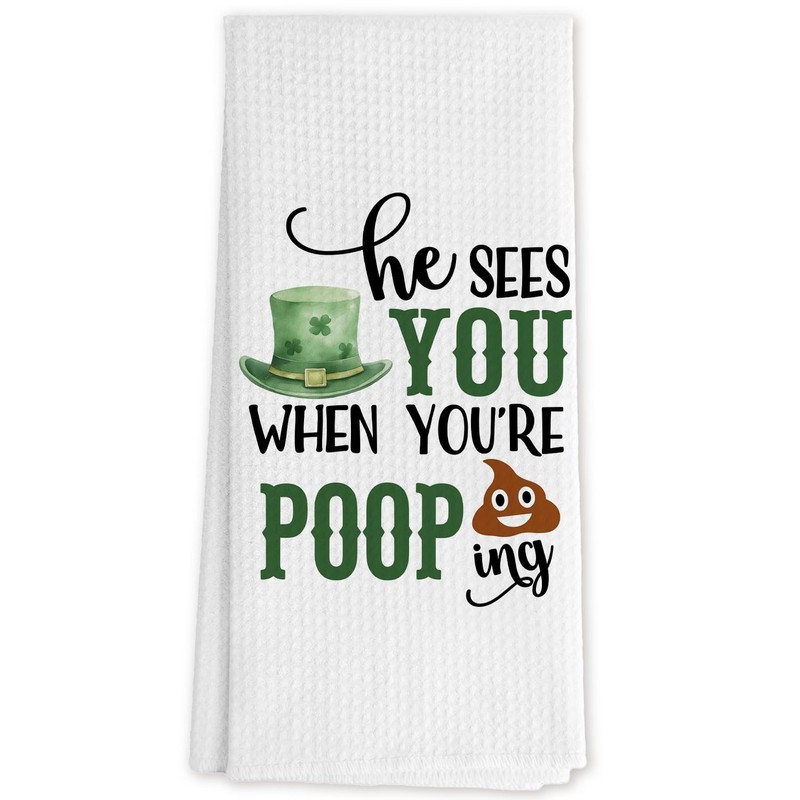 DNEULYR Funny St Patrick's Day Hand Towels, St Patrick's Day Bathroom Decor, He Sees You When You're Pooping Decorative St Patrick's Day Dish Tea Towels for Kitchen Decor, 16x24 Inch