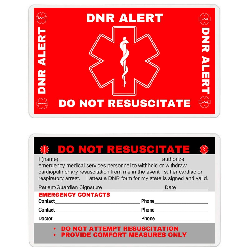 - DO NOT RESUSCITATE Medical Alert Wallet Emergency Card