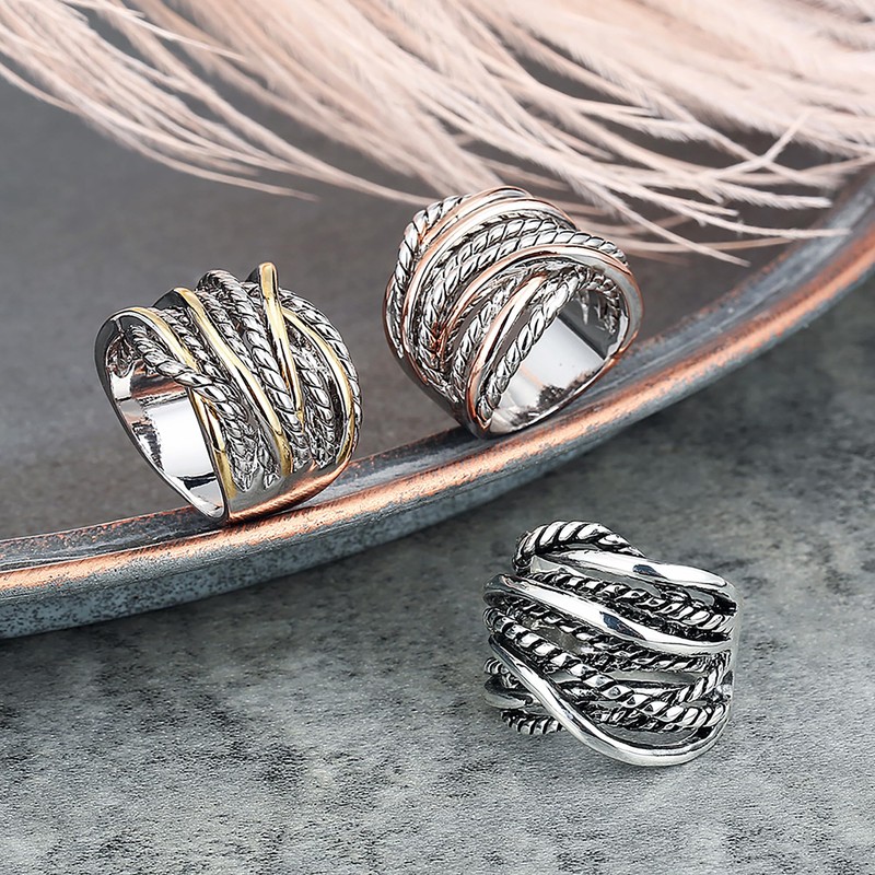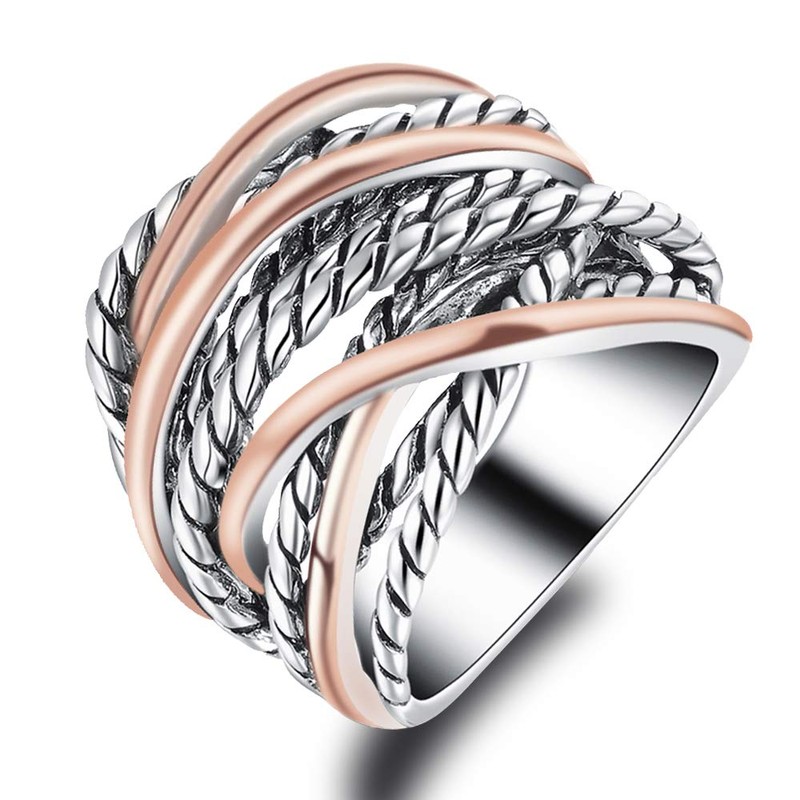 dnswez 2 Tone Intertwined Crossover Statement Antique Ring Fashion Chunky Band Rings for Women Men Gold Silver Plated Wide Index Finger Rings