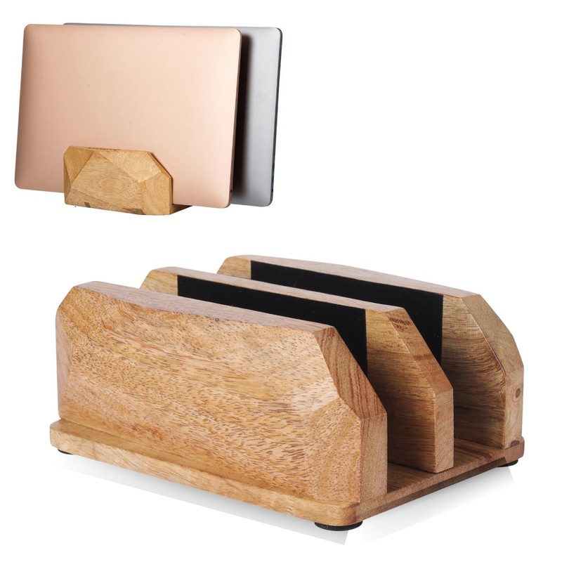 DnU Avenue Width Adjustable Vertical Laptop Stand for Desk, Laptop Holder to Dock MacBook, MacBook Pro and Other Laptops, Versatile Vertical Laptop Docking Solutions - Mango Wood
