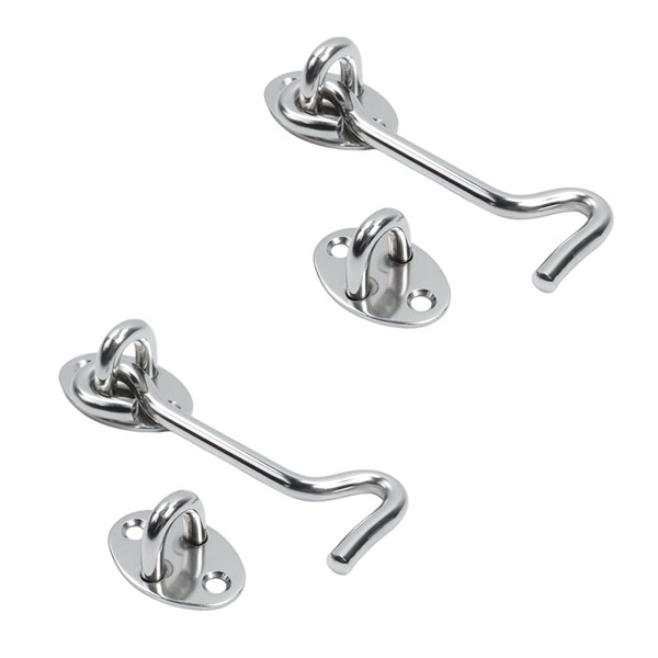 Dnyta 2 Pcs 4in Stainless Steel Barn Door Latch Door Lock, Thickened Window Hook Accessories, Privacy Hook and Eye Gate Latch for Door, Cabins, with Mounting Screws, Silver