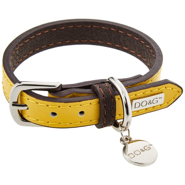 DO & G Leather Collection Dog Collar, X-Small, Yellow
