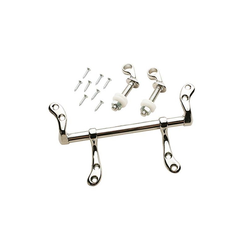 Chrome-plated brass standard pattern. Complete with plated screws, washers, and nuts.