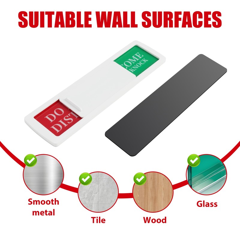 - Clear Visibility with Stylish Design: The door sign features a bold red and green color scheme that stands out, ensuring the sign’s status is easily visible from a distance. The sleek silver slider enhances the overall aesthetic, making it a stylish addition to any door.